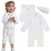 Tradition und Charme stehen im Mittelpunkt dieses wunderschönen weißen Outfits für kleine Jungen, die bald vor der ganzen Familie getauft werden. Alles, was Ihr Baby braucht, ist in diesem Set enthalten, das aus einem Ober- und Unterteil, einer Weste und sogar einer Baskenmütze für einen ländlichen Stil besteht.